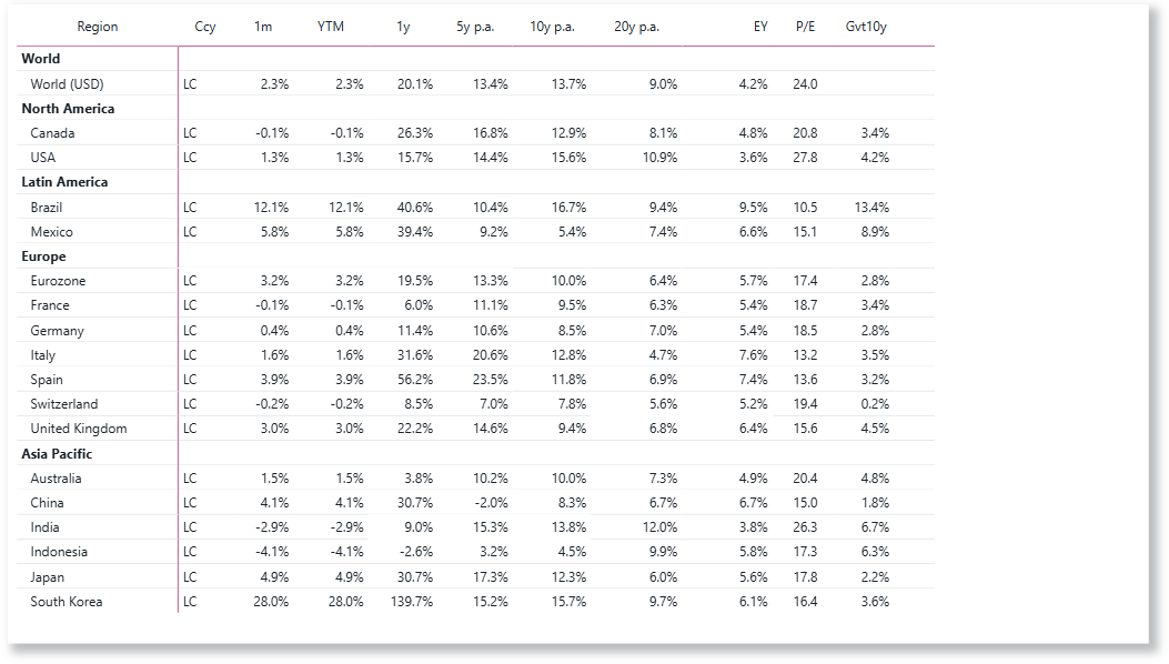 Lateinamerikanische Aktien erzielten im Januar eine starke Performance, unterstützt durch eine Verbesserung der Anlegerstimmung und attraktive Bewertungen. Brasilien führte die Region mit einem kräftigen Anstieg von 12,1 % an, während Mexiko ebenfalls deutlich zulegte und um 5,8 % stieg. Insgesamt übertraf die Region zu Jahresbeginn die meisten entwickelten Märkte.