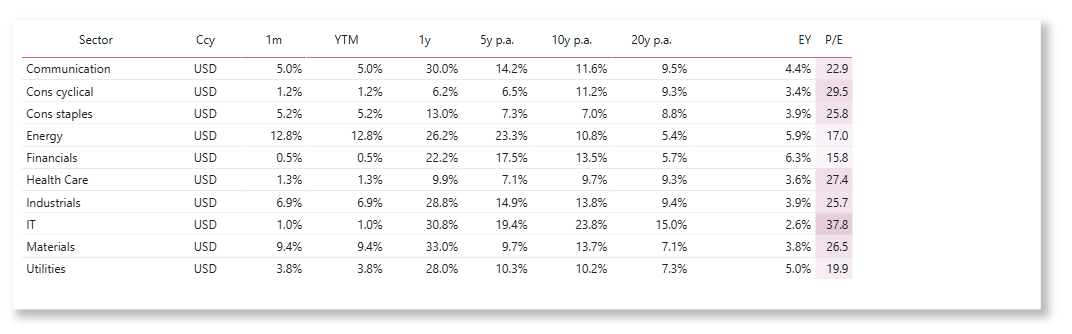 US-Aktien erlebten einen volatilen Start ins Jahr. Die anfänglichen Turbulenzen — ausgelöst durch einen Ausverkauf japanischer Staatsanleihen sowie Zollbedenken — führten zum stärksten Tagesverlust seit Oktober 2025 und trieben die Volatilität über die Marke von 20. Dennoch erholten sich die Märkte, erreichten neue Allzeithochs und schlossen den Monat mit einem Plus von 1,3 %, trotz einer späten Korrektur infolge schwacher Ergebnisse bei den großen Technologiewerten, Inflationssorgen und Unsicherheiten bezüglich des nächsten Fed-Vorsitzes. Die Rallye weitete sich über die Large Caps hinaus aus, gestützt durch solide Konjunkturdaten und Unternehmensgewinne: Mid- und Small-Cap-Aktien legten um 4 % bzw. 6 % zu. Die sektorale Entwicklung war überwiegend positiv, angeführt von starken Umschichtungen in Energie (+14 %) und Materialien (+9 %).